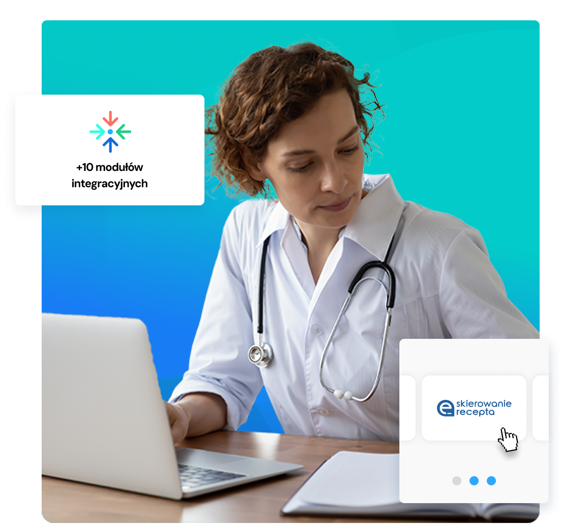 Łatwa i szybka integracja z eWUŚ, P1, RPWDL, eZWL, Znany Lekarz, Kliniki.pl, PaYU i innymi narzędziami, które wspomagają i rozwijają pracę placówki.